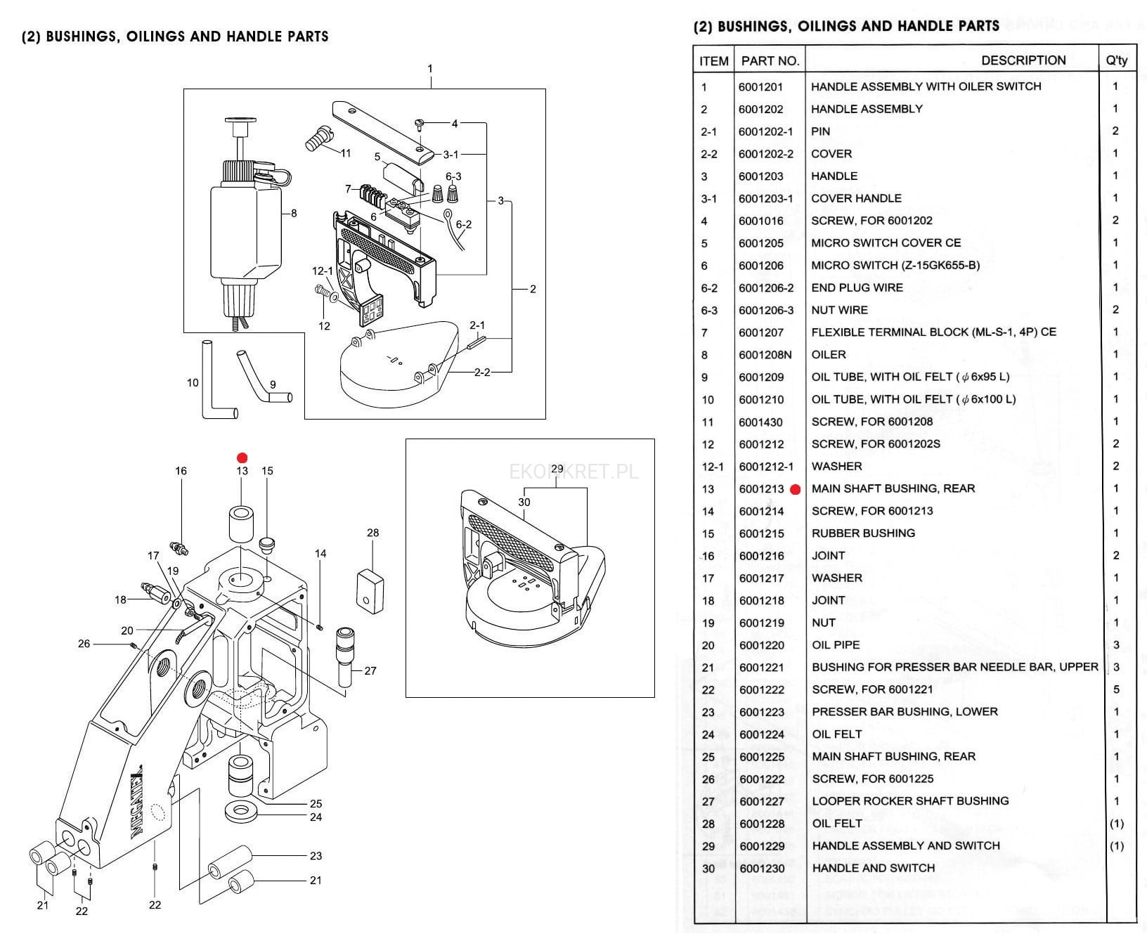 6001213 Tuleja wałka głównego - górna