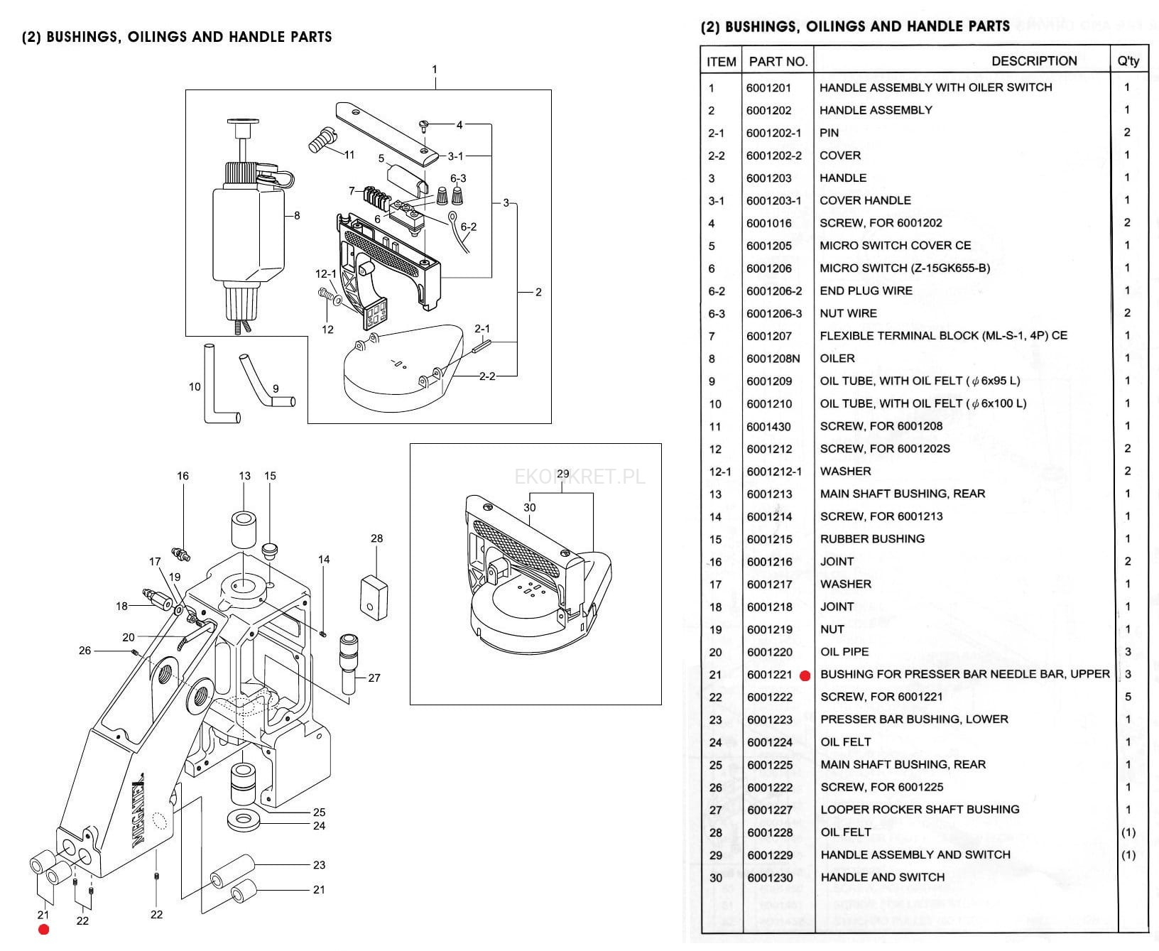 BUSHING FOR NEEDLE, PRESSER BAR