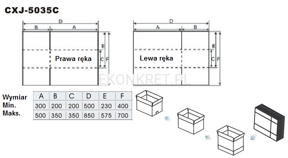 Maksymalny rozmiar kartonów: 500 x 350 x 350 mm