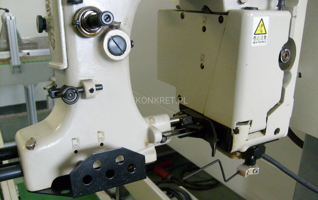 Nić odcinana jest automatycznie po zaszyciu worka. Maszyna jest wyposażona w głowice dwu nitkową ze statywami pod nici kilogramowe.