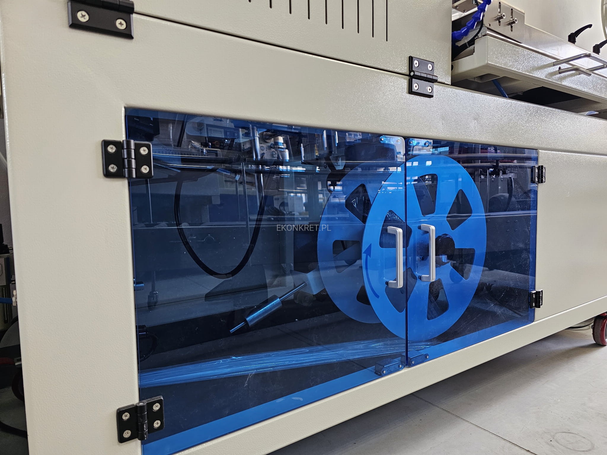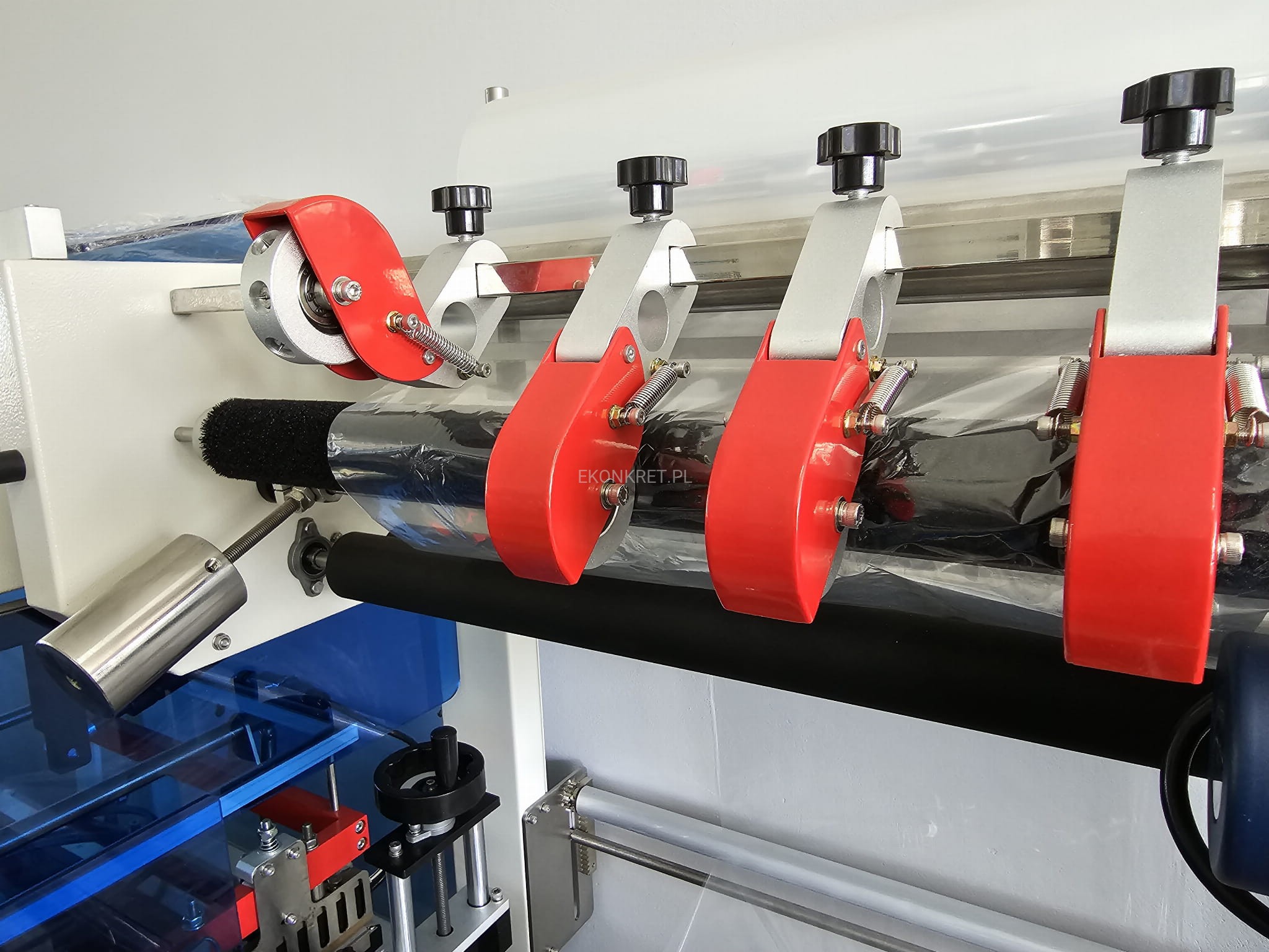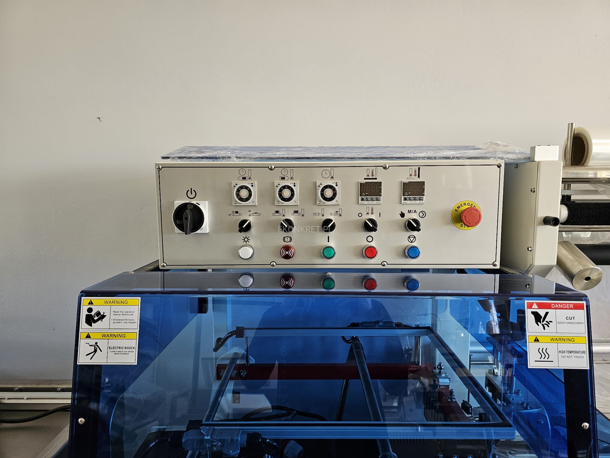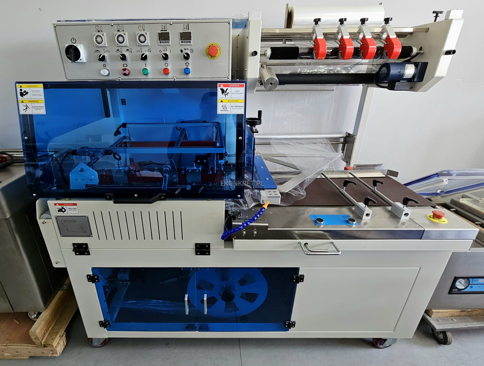 Maszyna wstępnie przygotowuje produkt przed dalszym obkurczaniem. Działa na zasadzie zgrzewarki kątowej, tj. zgrzewa oraz ucina folię na zgrzewie w taki sposób, iż pakowany produkt jest całkowicie i szczelnie nią otoczony. Urządzenie jest w pełni automatyczne i nie wymaga obsługi. Przeznaczone jest do pakowania żywności, elektroniki, leków, kosmetyków i innych.