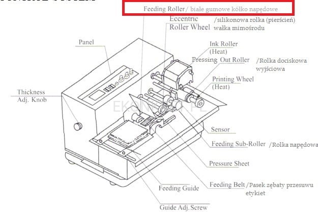 Białe gumowe kółko napędowe do datowników z serii MY-380 (feeding roller) wspomagające przesuw etykiety przy procesie datowania.