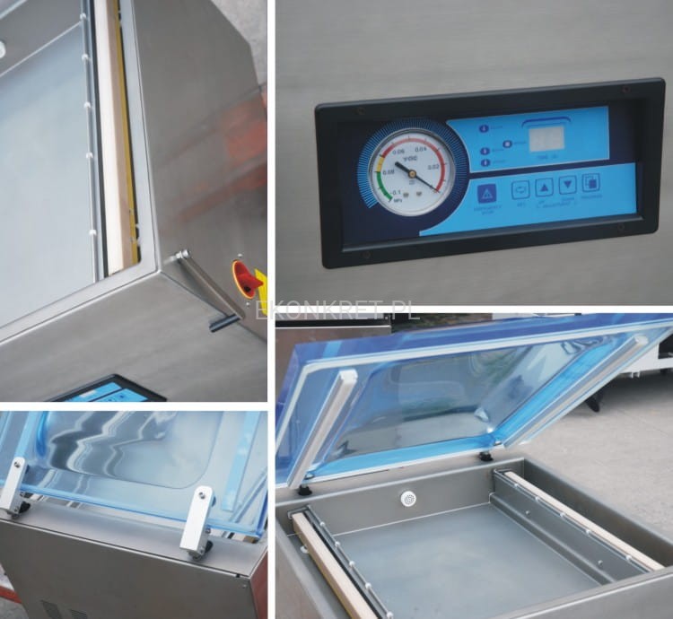 Maszyna idealnie nadaje się do pakowania produktów spożywczych takich jak np. mięsa, wędliny, kiszonki, jak również innych detali takich jak np. elektroniki, elementów mechanicznych. Różne opcje wielkościowe ułatwiają dobór odpowiedniej maszyny do potrzeb klienta. Obsługa całego cyklu pracy odbywa się na przednim panelu sterowniczym.