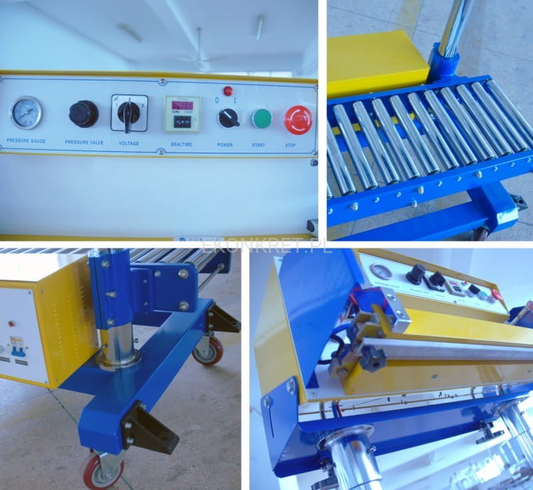 Profesjonalna zgrzewarka do ciężkich worków z grubej folii. Zgrzewa folie PE, PP także worki papierowo-foliowe oraz aluminiowe. Zgrzewarka posiada podwójny zgrzew oraz pneumatyczny docisk zgrzewadeł, wyzwalany włącznikiem nożnym, a także rolkowy transporter o ładowności 60 kg.