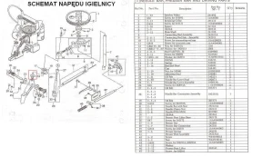 Śruba ramienia napędu igielnicy.