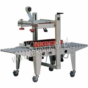 Półautomatyczne urządzenie do zaklejania kartonów złożonych kartonów z przesuwem bocznym. Posiada płynna regulację dostosowującą urządzenie do kartonów różnej wysokości bądź szerokości, a także skleja różnymi szerokościami taśm. Urządzenie po odpowiednim przystosowaniu z powodzeniem można zastosować w zautomatyzowanej linii produkcyjnej.