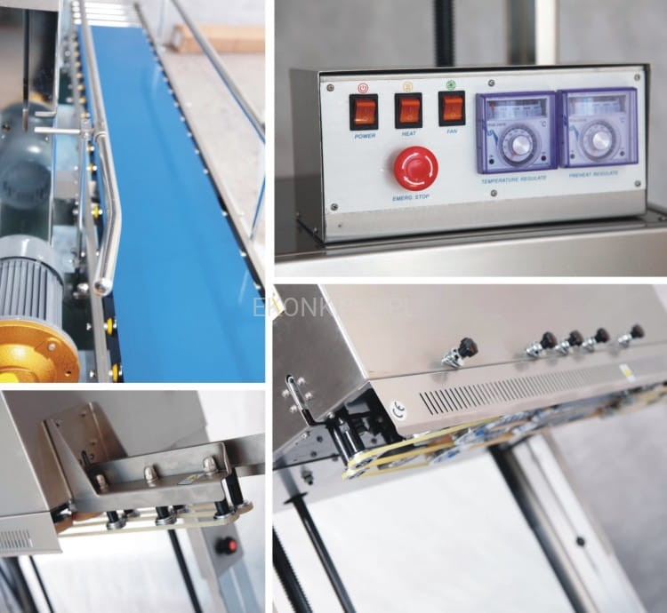 Maszyna ta, w odróżnieniu od zwykłych zgrzewarek, może obsługiwać kilka woreczków jednocześnie, umożliwiając maksymalne przyspieszenie procesu pakowania. Dodatkowym atutem zgrzewarki jest praktycznie nieograniczona szerokości woreczka. Bardzo ważne jest również to, iż sterowanie wszystkimi funkcjami maszyny skupione jest na jednym, centralnym panelu sterowniczym znajdującym się z przodu urządzenia. Zgrzewarka przeznaczona jest do ciężkich worków.