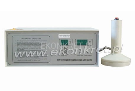 Urządzenie służy do indukcyjno-elektromagnetycznego naklejania aluminiowych wieczek pod nakrętki butelek. Jest to idealne rozwiązanie wtedy, gdy pakujemy w butelki substancję lotne, żrące lub trujące i musimy mieć pewność że nie wydostaną się one z butelki. Urządzenie jest nowe oraz objęte jest 12 miesięczną gwarancją.