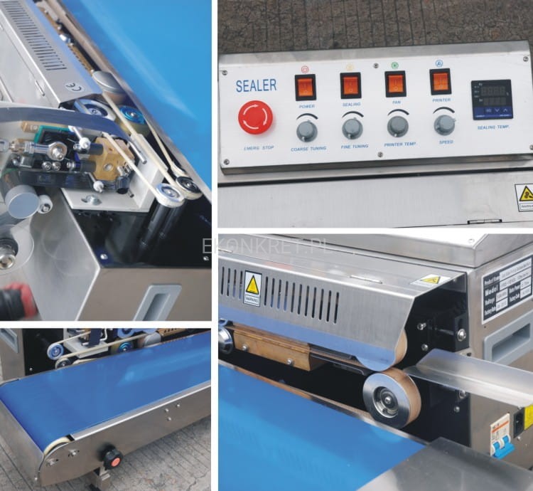 Zgrzewarko – drukarka stałocieplna do zgrzewania ciągłego z taśmociągiem w pozycji poziomej. Urządzenia te, w odróżnieniu do zwykłych zgrzewarek, mogą obsługiwać kilka woreczków naraz, umożliwiają więc one maksymalne przyspieszenie procesu pakowania oraz znakowania Państwa produktów. Maszyna wykonuje zgrzew o szerokości 10 mm za pomocą dwóch listew stałocieplnych. Dodatkowym atutem urządzenia jest praktycznie nieograniczona szerokości woreczka. Bardzo ważne jest również to, iż sterowanie wszystkimi funkcjami maszyny skupione jest na jednym, centralnym panelu sterowniczym, znajdującym się z przodu urządzenia.